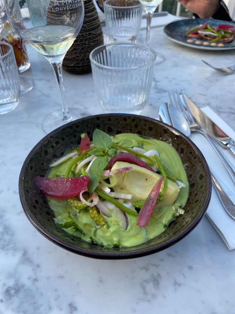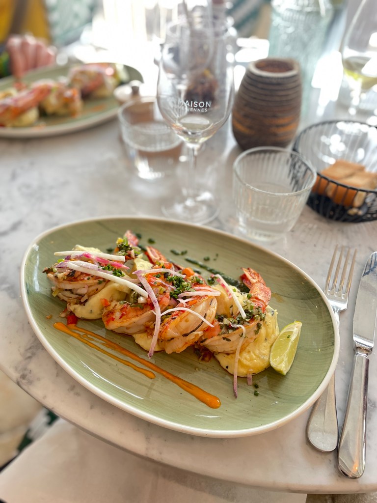 Dans le même thème anniversaire, nous sommes allés diner en famille chez Maison Louveciennes, dans la ville du même nom. C’est une très belle adresse au bord de la Seine, avec même une plage artificielle pour avoir l’impression d’être en vacances. Le lieu est bien décoré, le personnel vraiment adorable et la nourriture irréprochable ! Il y a un menu 3 plats à 45€ (ou 2 plats à 41€) qui vous permet de choisir n’importe quelle proposition à la carte ou dans les suggestions du jour. Je vous conseille le ceviche et les gambas que j’ai adoré, yummy !