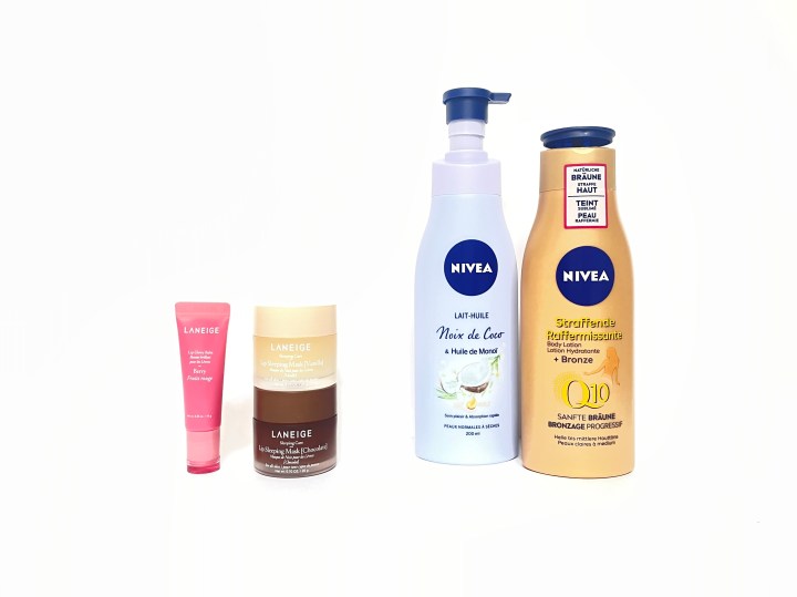 L’hydratation de la peau passe par l’intérieur (boire beaucoup d’eau) mais aussi par l’extérieur, surtout en été quand il fait chaud, qu’on s’expose au soleil, qu’on passe beaucoup de temps dans de l’eau salée/chlorée et qu’on veut prolonger au maximum son bronzage durement obtenu. C’est donc la saison où j’essaye de m’hydrater sans faute tous les jours, mais il est important que la texture soit très légère, non collante et surtout que l’odeur du produit me transporte en vacances (si je n’y suis pas déjà !). J’ai donc racheté 2 laits pour le corps Nivea que j’aime beaucoup et que je vous conseille pour l’été. Le premier est un lait-huile puisqu’il est enrichi en huile de coco et huile de monoï, dont il sent l’odeur (mamma mia !). Super fluide, il pénètre rapidement dans l’épiderme et l’odeur reste assez longtemps sur la peau. Le second a plus d’avantages (mais l’odeur est moins dingue, même si je l’aime beaucoup car elle est très délicate) puisque c’est un lait corps à la formule raffermissante grâce au Q10. Il est sensé améliorer l’élasticité de votre peau en 10 jours (je ne saurais pas vous dire si c’est une promesse tenue ou non, et je ne l’achète pas pour ça), l’hydrater évidemment mais surtout, il est très légèrement dosé en actif autobronzant. Donc au fur et à mesure que vous l’utilisez, vous obtenez un joli hâle progressif, sans les inconvénients d’un autobronzant classique : l’odeur tenace, les zébrures suite à l’application, le transfert sur les tissus clairs… Bref, achetez celui qui correspond le plus à vos envies/besoins, mais ces 2 produits Nivea sont vraiment super !