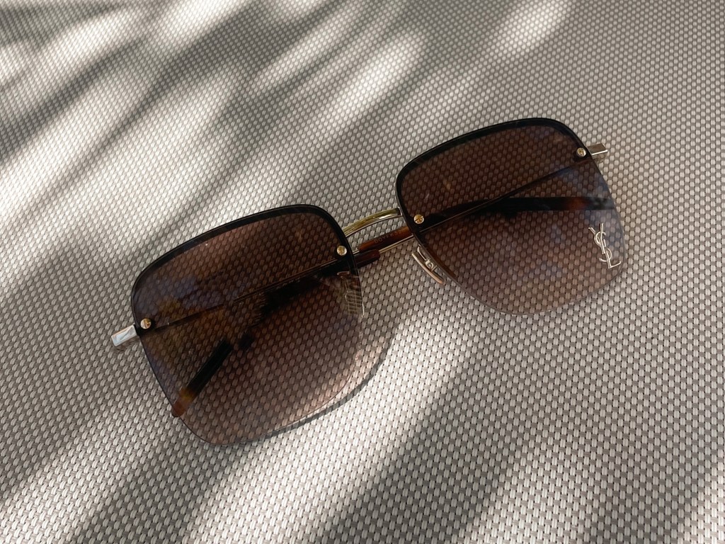 J’ai acheté une nouvelle paire de lunettes qui change un peu de ce que j’ai déjà (= beaucoup de paires de Rayban Round Flash) et qui va m’accompagner durant la fin de l’été et le reste de mes vacances. C’est un modèle Saint Laurent de la collection actuelle, qui existe en plusieurs coloris. Elles ont un côté un peu rétro, avec leurs grands verres dégradés sans monture apparente, et surtout ce petit logo YSL doré collé dessus. Clairement pas des lunettes protectrices pour bronzer en plein soleil mais plus pour frimer en terrasse à Paris.
