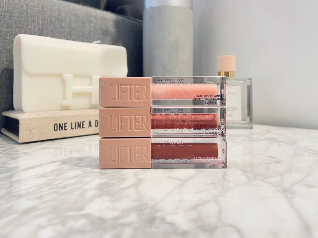 J’ai racheté mon gloss chouchou de l’an dernier… en 3 teintes ! Je suis vraiment très très fan des Lifter Gloss de Maybelline. Ils sont enrichis en acide hyaluronique donc ils ont un effet hydratant et repulpant, ils ne collent pas du tout et ont une très bonne tenue (2h sans manger/fumer/boire) et je suis très fan de leur parfum sucré vanillé. J’ai donc 3 coloris : Ice (un rose pâle nacré), Moon (un rose plus soutenu avec des nacres bronze) et Silk (un vieux rose plus opaque très légèrement brillant).