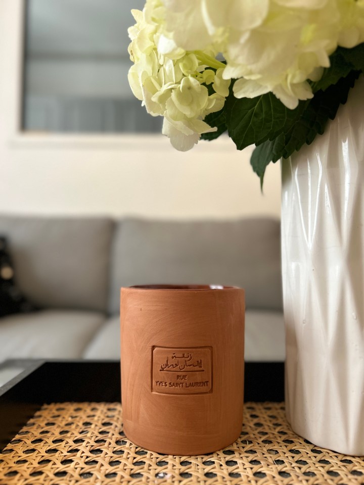 Cette bougie faisait partie d’une de mes wishlist il y a déjà 2 ans, c’était donc évident qu’elle se retrouve dans mes favoris maintenant que je l’ai achetée au Grand Comptoir d’Issy (où elle est d’ailleurs 10€ moins chère que partout ailleurs). J’aime beaucoup son style brut, façon terre cuite, dans laquelle est gravée en français et en arabe « rue Yves Saint Laurent », en honneur à la rue éponyme de Marrakech. Cette bougie sent un délicat mélange de vanille et de mandarine, et pour être honnête je ne l’ai même pas encore allumée car juste posée sur ma table basse, elle diffuse déjà suffisamment son parfum pour l’apprécier !