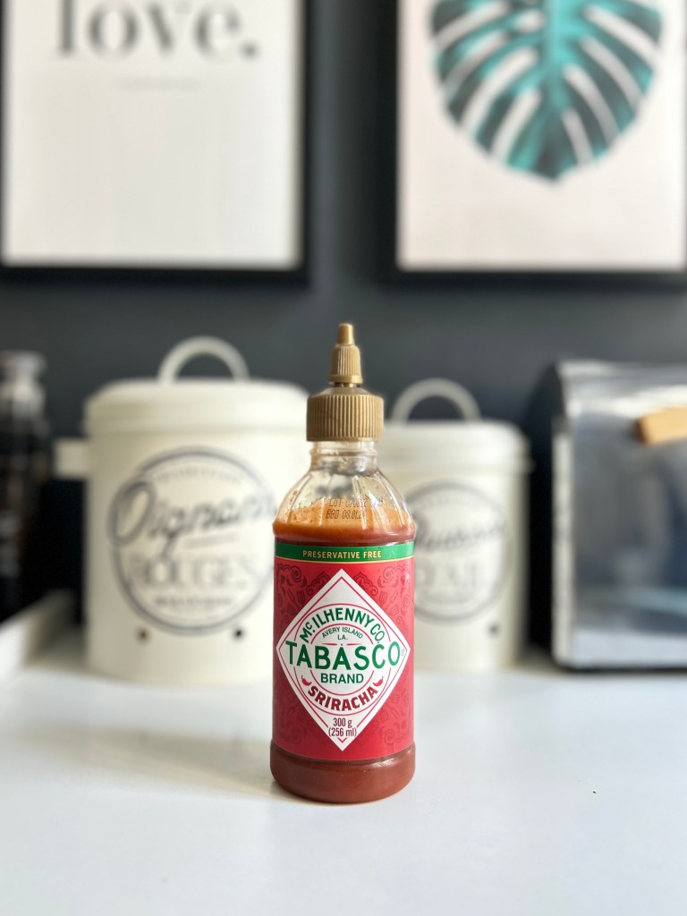 La Sriracha est ma sauce piquante favorite, j’en accommode beaucoup de mes plats ! Mais j’en ai récemment découvert une nouvelle version, encore plus incroyable : le Tabasco façon Sriracha ! Je l’ai trouvé chez Action au début du mois mais elle y est encore (et je devrais d’ailleurs veiller à faire du stock !). Je ne suis pas super fan du Tabasco car son goût ne me plaît pas lorsqu’il s’agit d’assaisonner au goutte à goutte un plat fini, mais imaginé façon sauce Sriracha (donc piment rouge, ail et vinaigre) c’est vraiment parfait : on retrouve le pep’s du Tabasco et le goût sucré et réconfortant de la Sriracha.