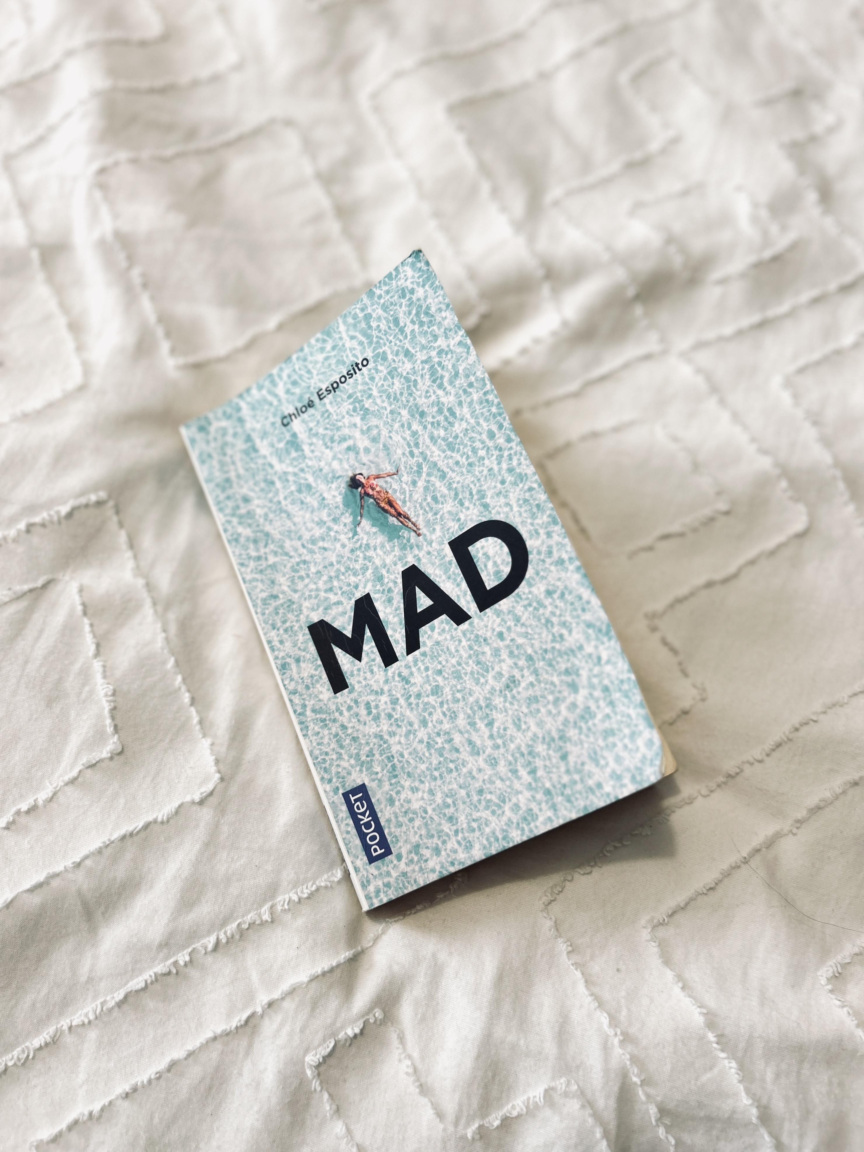 J’ai pris le temps de lire en juin et j’ai commencé/terminé MAD de Chloé Esposito, un livre que je sors de je-ne-sais-où mais qui trainait chez moi. Alvie, une jeune femme un peu ratée qui vit à Londres, décide de rejoindre sa soeur jumelle en Sicile suite aux invitations insistantes de celle-ci. Elle y découvre son incroyable villa, son sublime mari, son mode de vie luxueux… et comprend vite que quelque chose cloche dans ce tableau presque parfait. Je ne vous en dis pas plus si jamais vous le lisez un jour, mais je vous le conseille car j’ai beaucoup aimé le ton de l’auteure, les références qui me parlaient beaucoup et l’histoire qui change complètement de ce à quoi on s’attendait au début.
