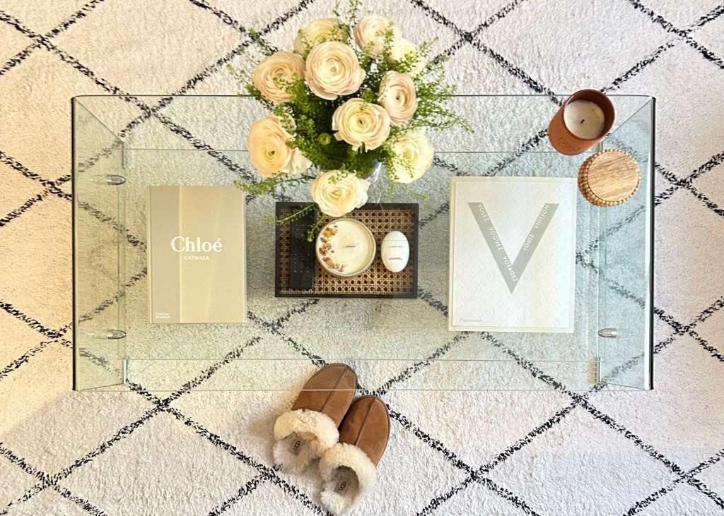 Il faut savoir que je change de table basse environ tous les 2 ans ; je crois que le fait qu’elle trône au milieu de mon salon m’en lasse assez vite… J’ai donc décidé de troquer ma table gigogne Wittsjo d’Ikea contre ce modèle découvert et adoré sur Instagram. Je l’ai achetée sur le site Themasie, et c’est exactement la même que la Burano de Kave Home mais 2x moins chère. J’aime beaucoup son style en verre trempé qui la rend assez discrète et n’encombre pas la pièce, mais surtout cette tablette en verre qui permet de poser un peu de décoration (bougies, gros livres…). Vous aimez ?