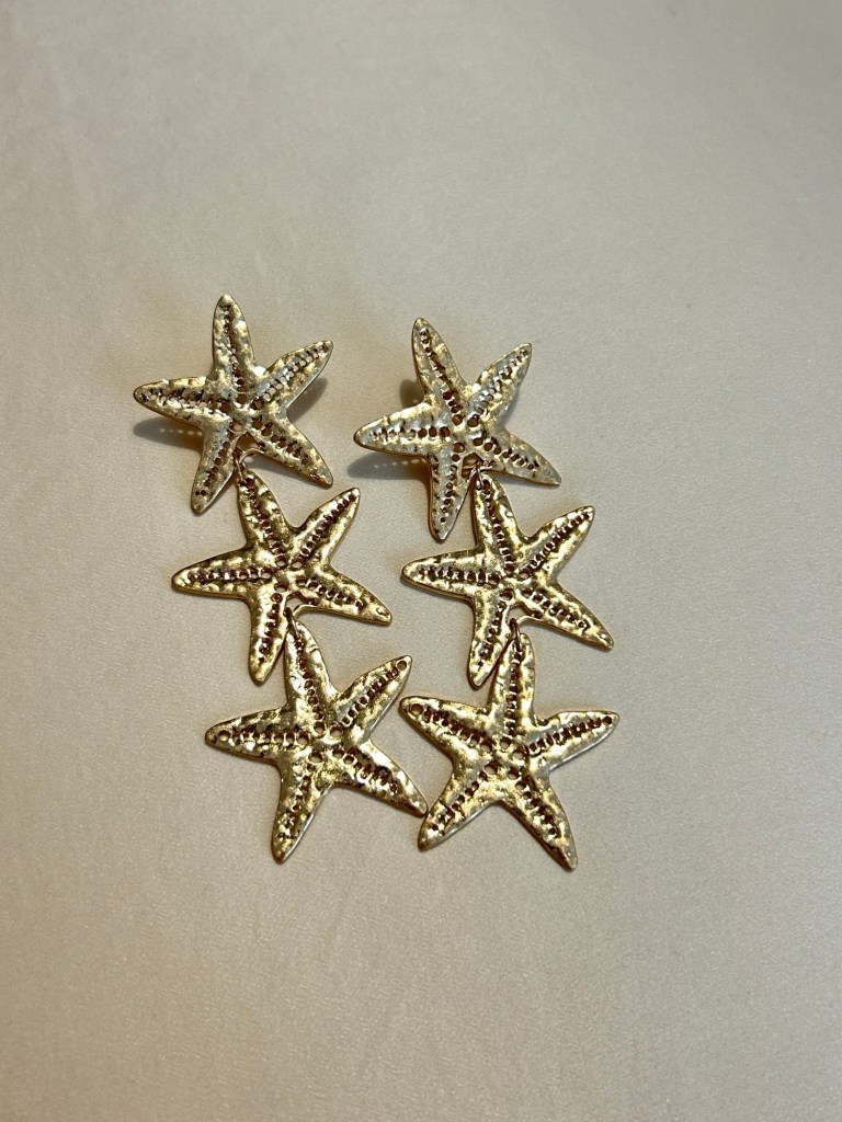 Ma maman a fait rétrécir un bracelet tennis en diamants que mon père lui avait offert et a fait monter les pierres enlevées en 2 paires de boucles d’oreilles, qu’elle a offertes à ma sœur et moi. C’est vraiment trop mignon et c’est un bijou intemporel ! J’ai aussi eu une paire plus fantaisie, avec des étoiles de mer dorées, que j’ai adorées porter au mariage de ma cousine en Grèce.