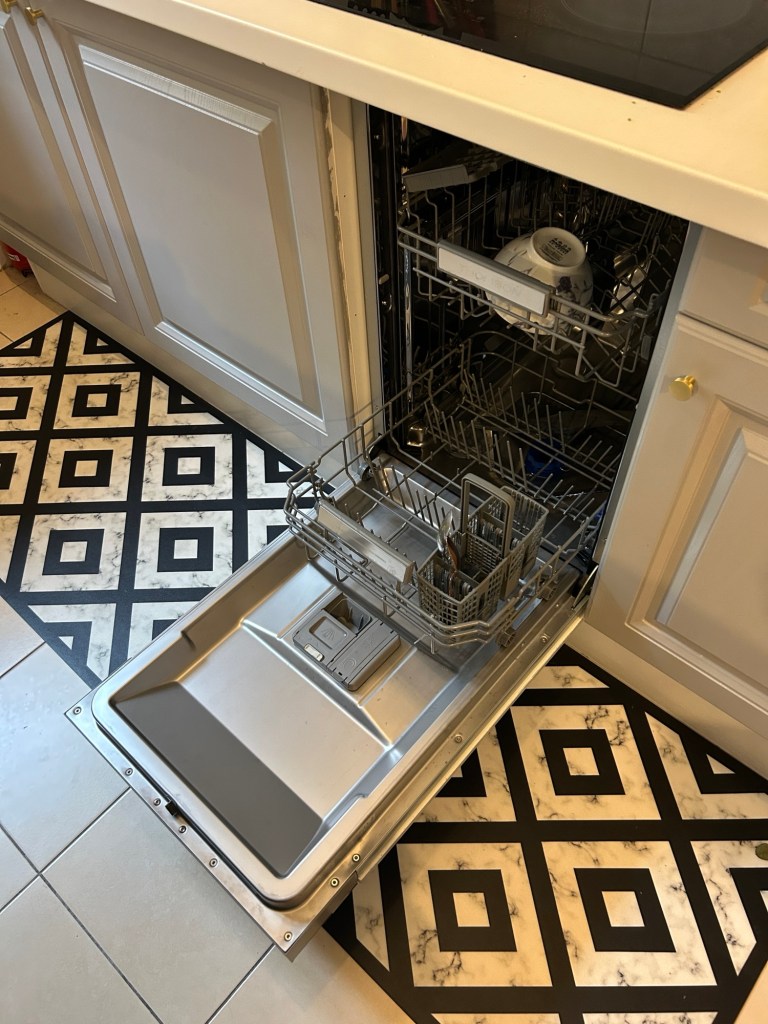 T’as vraiment passé la trentaine quand tu commences à demander des cadeaux électroménagers à ton anniversaire ou Noël… et comme je n’en pouvais plus de faire la vaisselle, j’ai sacrifié un meuble de ma cuisine pour y mettre un petit lave vaisselle encastrable qui s’avère vraiment très utile.