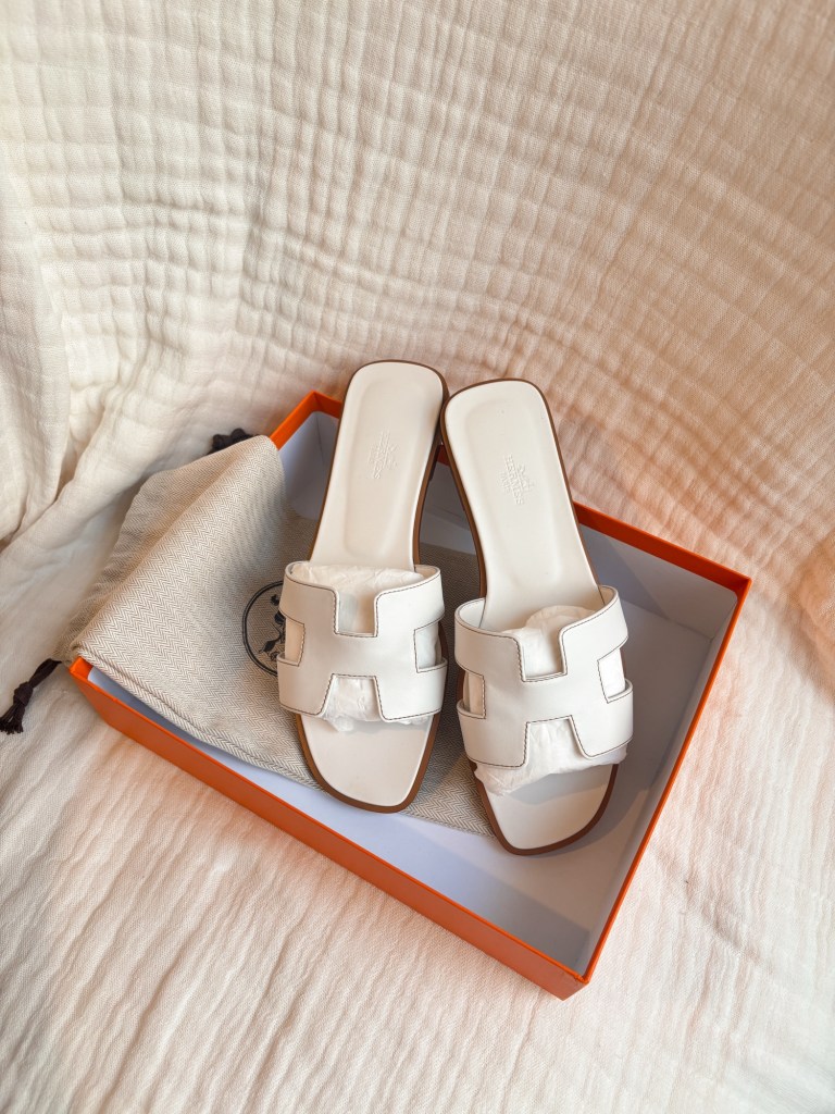 Malgré leur fragilité, la douleur qu’elles m’ont causé au début et le boucan qu’elles font dans les escaliers, j’aime énormément porter mes sandales Oran en été. Elles sont minimalistes, chic et font un très joli pied. Je ne porte presque pas de marron donc le coloris gold ne m’intéressait pas, mais les blanches me faisaient vraiment envie (sur peau bronzée, mamaaaa). Donc j’avais une alerte sur Vestiaire Collective depuis un moment et une paire en ma pointure, à un prix intéressant, s’est présentée avant mes vacances. Alors honnêtement j’ai été très déçue de la vendeuse (envoi avec 48h de retard, chaussures même pas nettoyées, aucune excuse…) mais après avoir briqué la paire comme il se doit, je trouve que j’ai fait une plutôt bonne affaire pour 360€ (contre 610€ neuves).